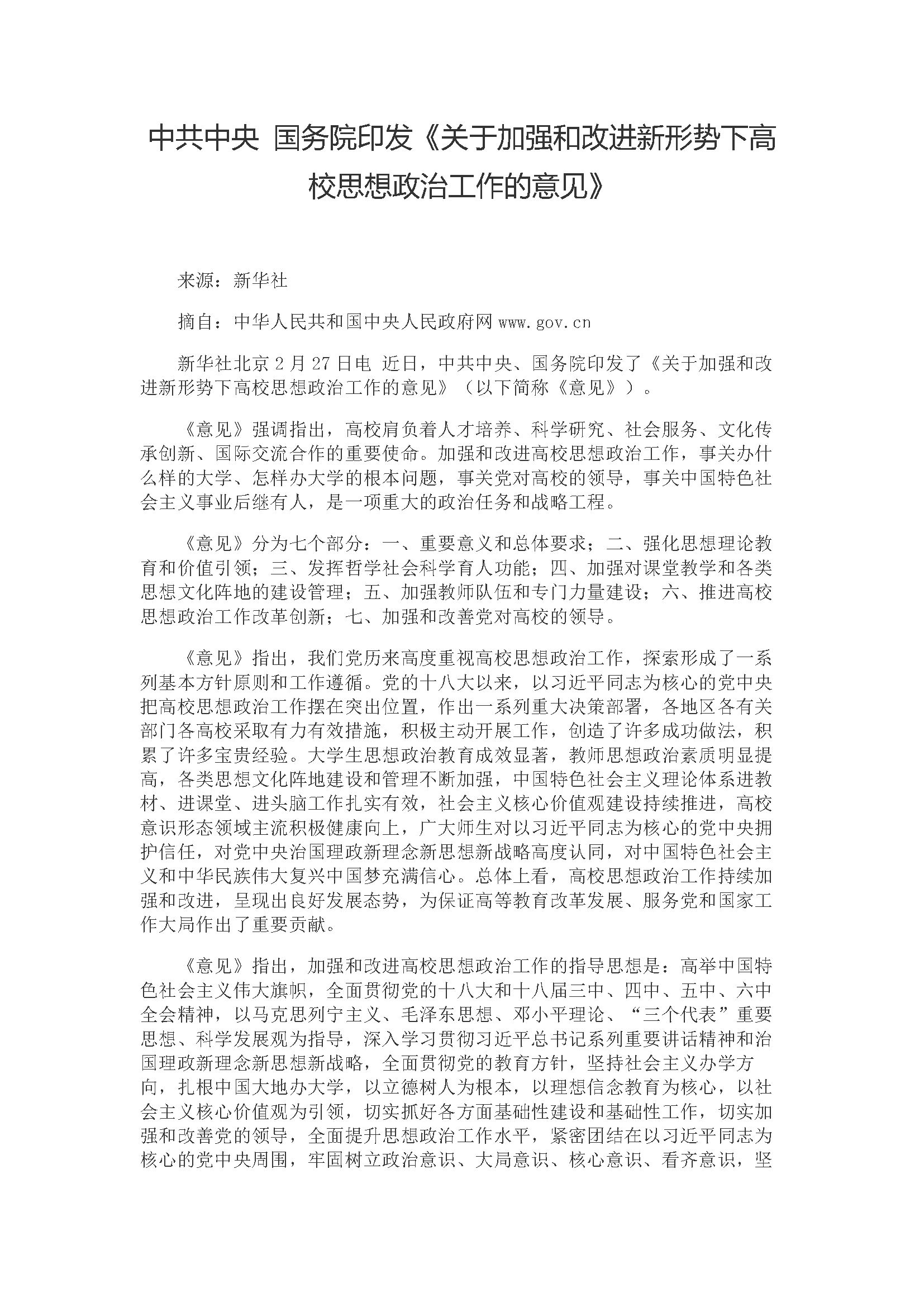 中共中央 国务院印发《关于加强和改进新形势下高校思想政治工作的意见》.pdf
