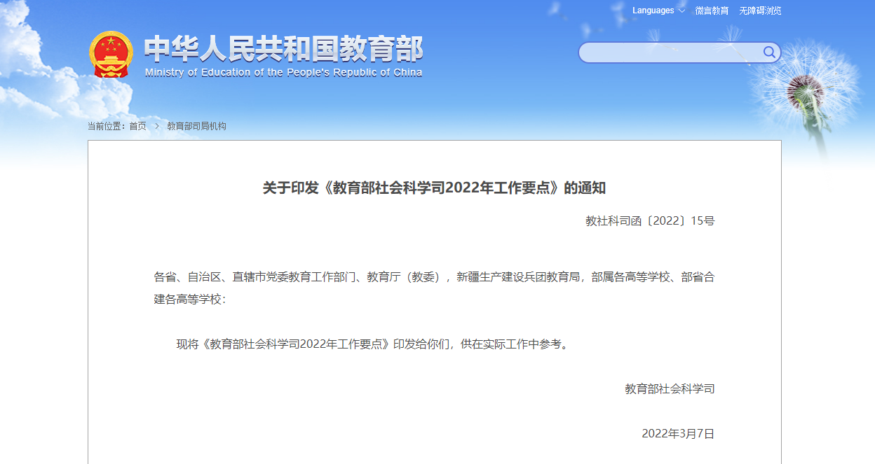 教育部社会科学司2022年工作要点
